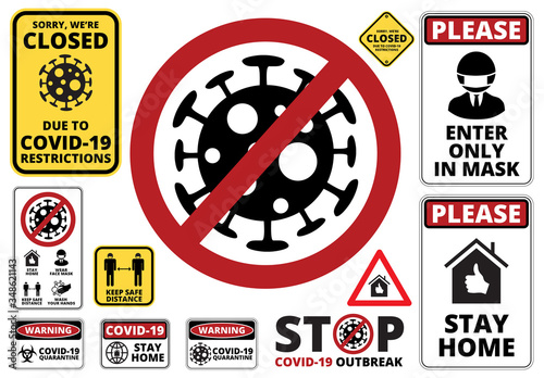 Covid 19 Danger Signs Set Stock Vector Illustration Of Medical 181082401